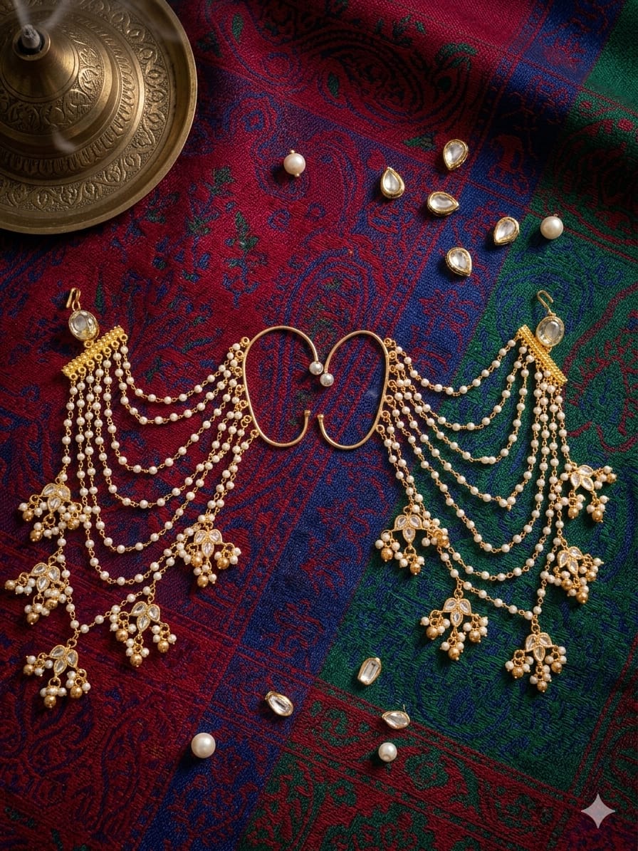 Make a bold and graceful statement with these stunning ear cuffs paired with delicate hair chains. Designed to drape effortlessly from your ear to your hair, this unique accessory blends modern edge with traditional elegance. The finely crafted chains create a flowing silhouette, adding movement and charm to your overall look.